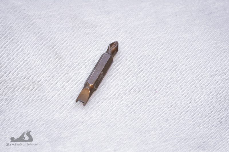 Именно для этой пилы нужно было изготовить «отмычку». Сделал её из биты для шуруповёрта. У второй пилы были винты под обычный плоский шлиц.