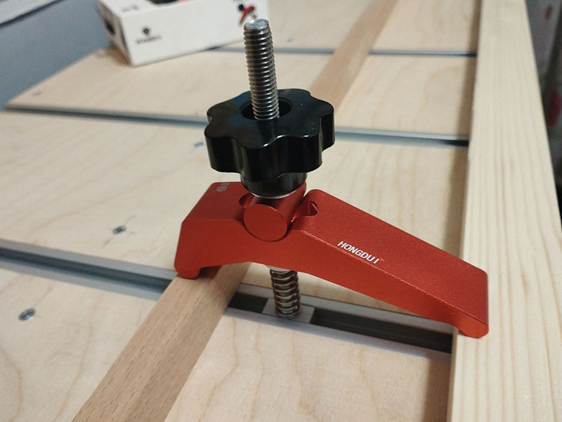 Специально для прижимов Hongdui изготовил фанерное основание с прорфилем Т-трек 19х12. Покупал профиль на Озоне от CMT.